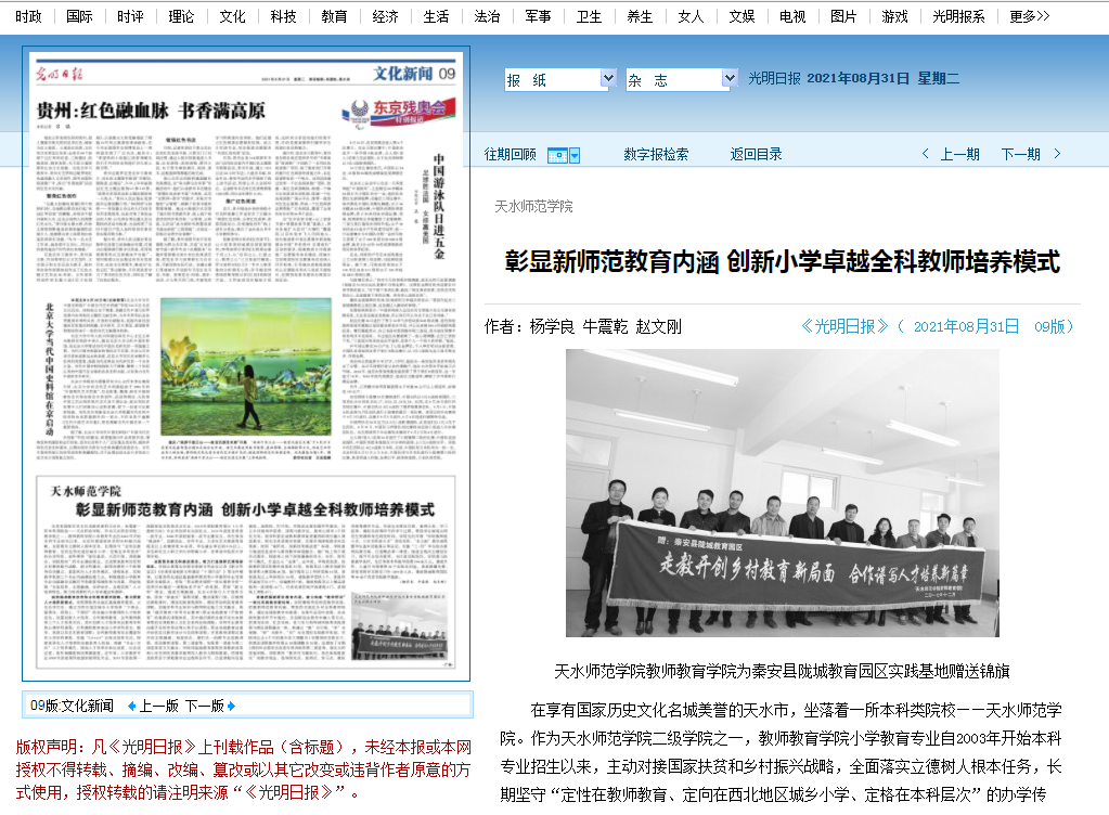 天水师范学院彰显新师范教育内涵 创新小学卓越全科教师培养模式