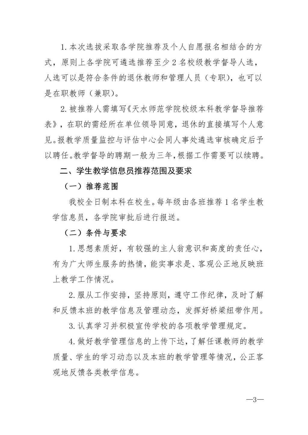 关于推荐校级本科教学督导和学生教学信息员的通知