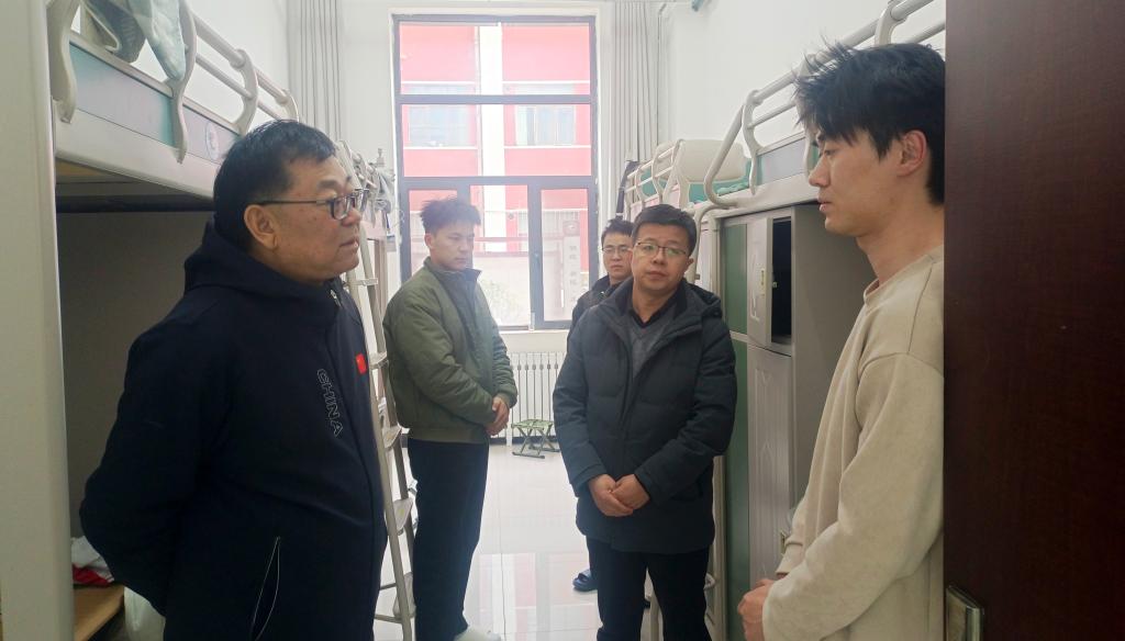 在学生公寓,汪咏国一行查看了消防设施、安全通道,并走进公寓值班室、辅导员值班室亲切慰问值班人员,查看值班工作记录,询问假期值班情况,叮嘱务必加强值班值守,重点检查公寓大功率电器,切实加强学生公寓的日常管理和服务保障,为学生营造安全、温馨的居住氛围。
