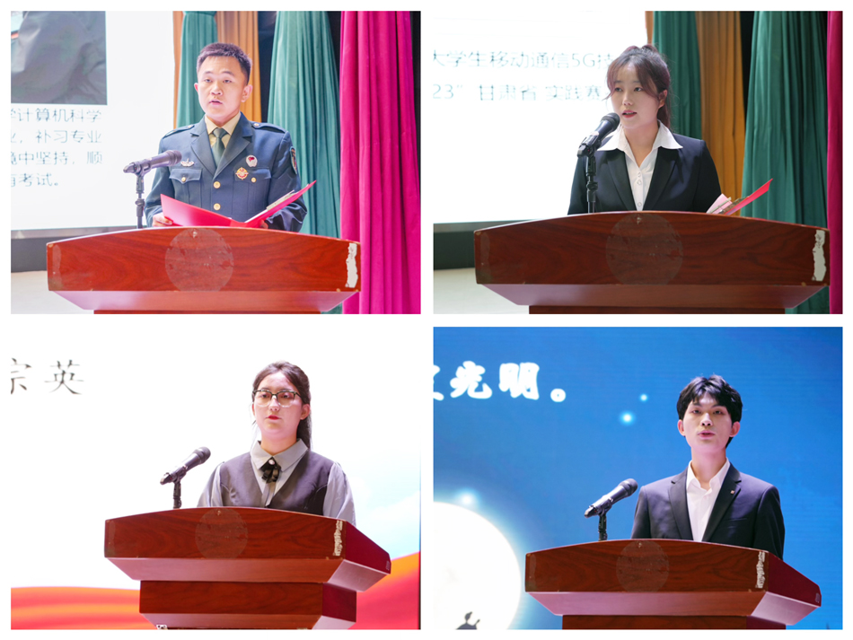 报告会上,生物工程与技术学院2020级李旭泰、马克思主义学院2020级柳爱玲、土木工程学院2020级魏成福和电子信息与电气工程学院2021级关正泽,分享了他们一展少年狂、不负韶华梦的军营生活,以及退伍不退志、勇敢做自己,从战士到硕士的励志故事。