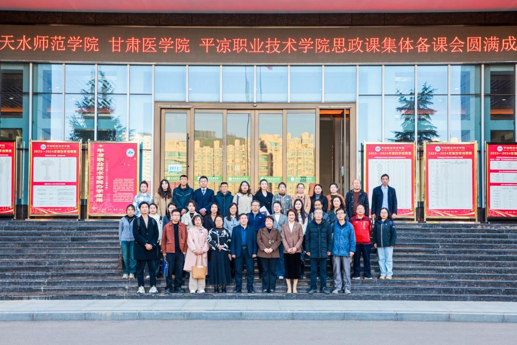 为贯彻落实习近平总书记关于新时代思政课建设重要指示,进一步推动课程建设,10月24日,天水师范学院、甘肃医学院、平凉职业技术学院三校马克思主义学院在平凉职业技术学院联合举办“习近平新时代中国特色社会主义思想概论”集体备课会。三所高校马克思主义学院的骨干教师参加集体备课会。