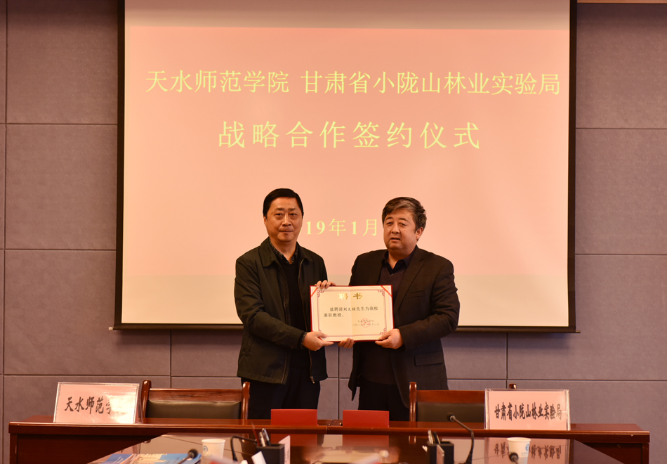 1月11日,天水师范学院与甘肃省小陇山林业实验局战略合作框架协议签约仪式在天水师范学院举行。天水师范学院党委书记李正元、校长安涛、纪委书记李淳和甘肃省小陇山林业实验局局长寇明君、党委书记王作谊及双方有关部门负责人、教师代表参加签约仪式。