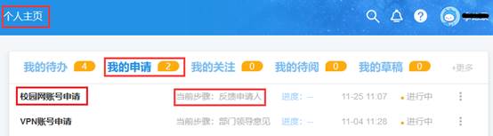 “个人主页”如图15所示,可以查看我的待办、我的申请等信息,点击待办下面的具体事项就可以进行具体流程的处理。