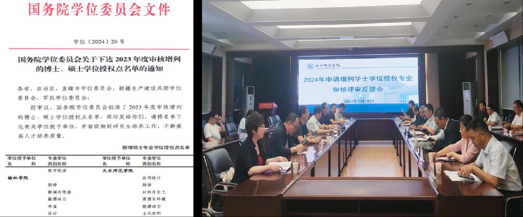 对标学位授权审核条件,以目标为导向,以学科建设为支撑,结合学校的学科优势和特色,理顺学科建设与授权点建设之间的关系。优化学位点布局,强化特色学位点建设,加强博士研究生导师队伍建设,14名研究生导师受聘为西北师范大学、天津师范大学兼职博导。制定《博士学位授予单位2024年建设工作方案》,下达2024年博士授权单位建设年度任务清单,举办2次博士学位授权单位建设工作推进会,召开2次博士授权点建设协调会。
