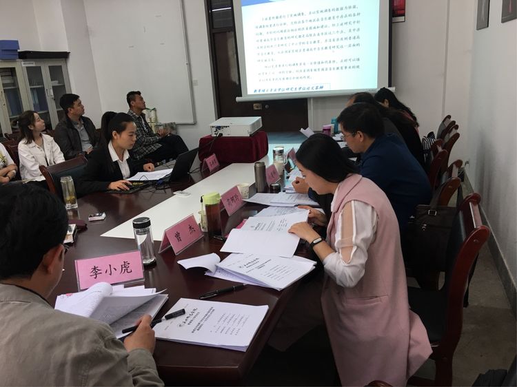 答辩过程包含自我陈述毕业论文报告和评委提问两部分。答辩委员会成员认真评审打分,5名教育硕士研究生按照答辩环节进行了严肃认真地回答,顺利完成了答辩。会后导师、评委和参加答辩的同学进行合影留念,2016级8名教育硕士(学科•音乐)研究生和部分本科生旁听了答辩过程。