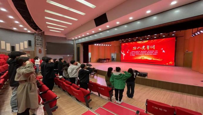 在重温入党誓词环节,学生党支部书记徐雯带领全体党员面对党旗宣誓,重温入党初心,再一次接受党性洗礼。