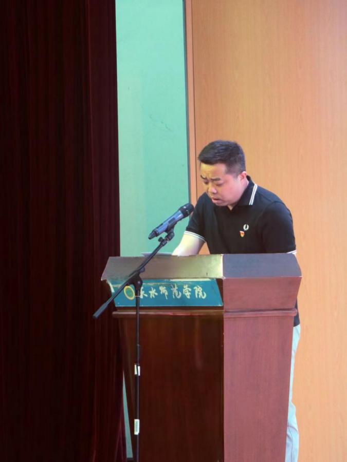 随后,上一届学生会主席团成员杜小亮作述职报告。《报告》回顾了过去一年来学院学生会始终以加强政治引领为根本,践行服务宗旨,以学习党的二十大精神、习近平新时代中国特色社会主义思想为主线任务,着力提高学生会工作人员政治素养和理论水平。始终把服务广大同学作为基础 ,切实起到了桥梁纽带的作用,正确引导广大同学把个人理想融入到党和人民的共同奋斗之中。